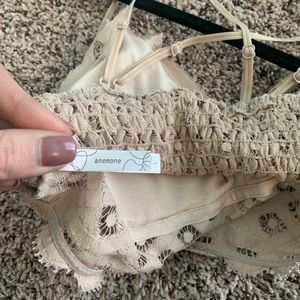 Beige/Natural colored bralette. Bought from online boutique, and just don’t wear, I have to many others. Size large. Only tried on. New, but never had tags since it came from online boutique. Adjustable straps, criss-cross back. Padding.