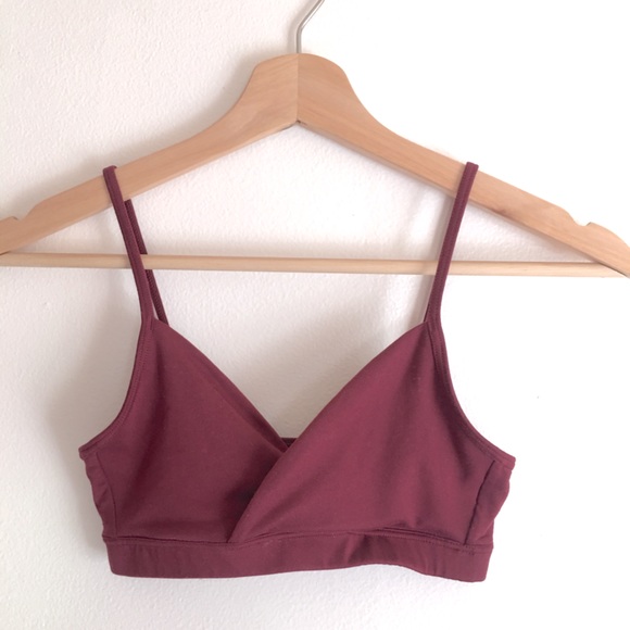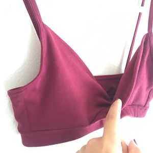 Adorable burgundy bralette/sports bra. Size XS-probably better fits on an XXS. The front cups overlap and the top is a pullover style. Straps are not adjustable. Simple and cute!! ✨Offer welcomed!✨