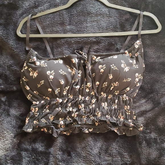 Hollister black flower print bralette one wear once like new cute and comfy
