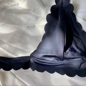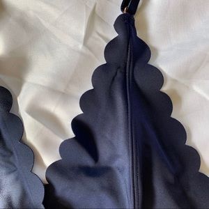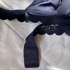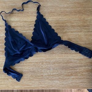 Navy blue halter bralette with scalloped lining. Has an adjustable strap and clip backing for the perfect fit.