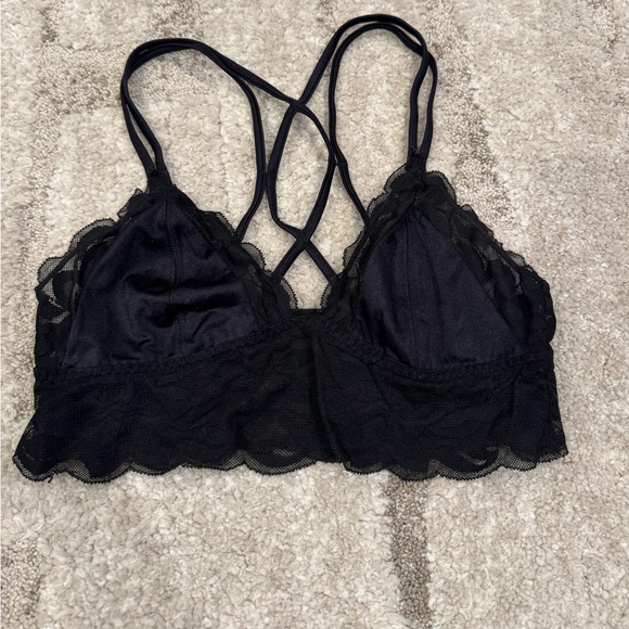 Silk-like material. Cross strap detailing, with cute lace features. Super adorable!