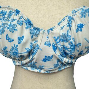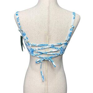 Bralette Bikini Top Size D/DD Blue White Floral Wild Fable Strappy Tie Back NWT