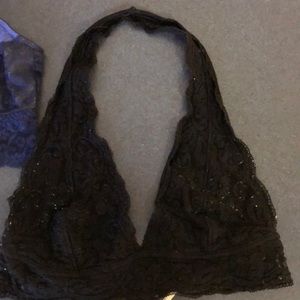 Black halter neck bralette is a size small from urban outfitters, blue triple stripe is a large from Victoria’s Secret. Both for 10 or 5 each