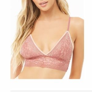 Two bralettes, one black one pink both new with tags. Black is L/XL pink L. Black is padded the pink one is not. Black one has a beautiful back design. Very cute to wear under a backless tee or to layer. Pink one is Forever 21 and the black one is some random brand.
