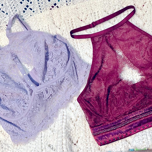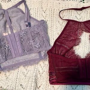 Two new Victoria’s Secret bralettes, purple one is size 32c and the red one is xs