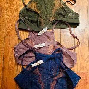 NWOT Three pretty Adjustable bralettes! Great layered under shirts and flannels!