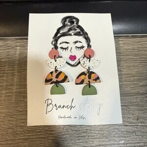 New with tags white, pink, black, ta and green earrings by Branch Alley in excellent brand new condition.