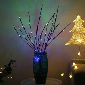 About this itemProduct detailsDescription: Material:PVC,Metal wire LED lamp beads:20 Voltage:3V Power:0.06W/lamp beads Waterproof rating:IP44 Power supply:2 x AA battery (not included) Light color:warm white/colorful/pink/white/blue/purple Specifications:single 20 lights,5pcs branches Quantity:1 x decoration light Features: 1.Made of high quality materials and durable. 2.Single branch, always bright mode. 3.The branches are metal wire and can be bent at will. 4.The lighting effect at night will be better. 5.Suitable for vase decoration, shop windows, restaurants, etc. 6.Note: Folded delivery and you can manually restore the original appearance when you receive the goods. Package included: 1 x decoration light Note: The size of the manual measurement may have some error, it is within the range of ±1 cm, the actual size shall be subject to the actual object. Due to different lighting and shooting conditions, the color of the image may differ from the actual product. Please refer to the actual product. Tree branch lights, each willow branch light comes with 5 bendable stems, 30 inches tall with 20 super bright Leds, perfect for your Wedding, Halloween, Christmas decoration. Lighted branches battery operated by 2 x AA batteries(NOT included), 3V input voltage, completely safe for operation, mini battery box can be easily hid in the vase out of sight, avoid the annoying AC cord connection.
