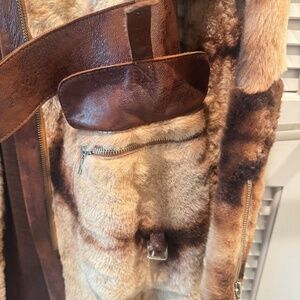 Branco Pelle Shearling/Leather Coat with Belt and Zipper Accents - Size Small