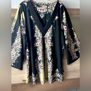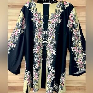 Used blouse, in perfect condition, it is very pretty and is a plus, the fabric stretches and has a very nice print in combination with the color black, its fabric is 95% Polyester, 5% Elastine. 🫶