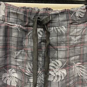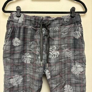 Super fun and unique Brand Bazar Plaid Print Pants. Made in Italy. Super soft. Pull on with elastic waist and drawstring. Thick material. Pockets. Material and size tag hard to see. Measures like a Small. See measurements.