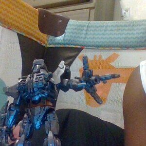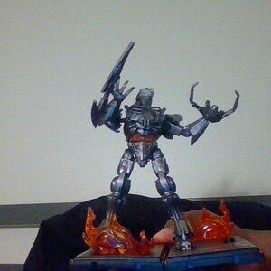 It has 2 broken claws on its left hand. Accessories are his blade that can be put on his right arm.