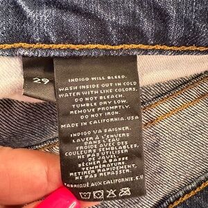 J Brand Dark Wash Jeans – Size 29 with a flattering straight leg cut. Features a waist of 16.5”, 9” rise, and 27.5” inseam. Classic dark wash denim with a clean finish—perfect for dressing up or down. A versatile closet staple with premium fit and comfort.
