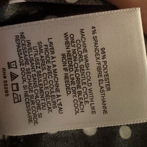 Silk blouse, black with white dots, and zipper in front, 96% polyester, 4% spandex