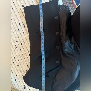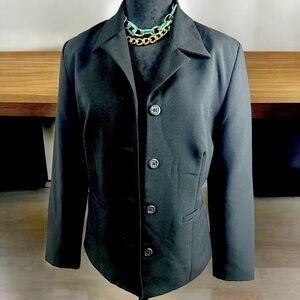 used, perfect condition, it is a very nice jacket, its size is S, it is black, with 4 buttons on the front, and lining inside, its fabric is manageable, and soft, 100% Polyester.🫶