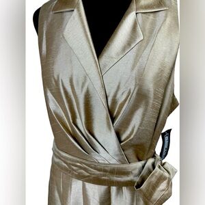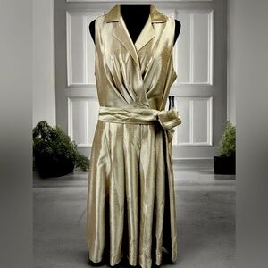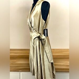 New, it is a formal dress, very beautiful and elegant and gold in color, with a belt at the waist, dress 55% Nylon, 45% polyester, lining, 100% polyester.🫶👗