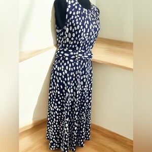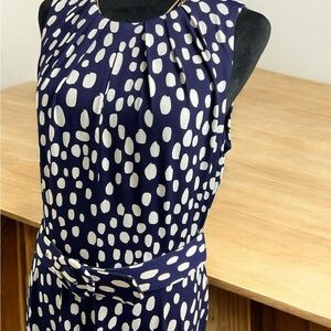 Brand: London Times, Size: 8, Navy Blue Dress with Beige Polka Dots