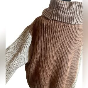 New sweater, knitted, high neck, color combination, two shades of brown, beige, 100% acrylic