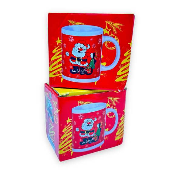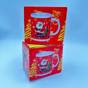 Brand NEW 1990s Christmas Mugs in Gift Box - Santa - Retro tacky