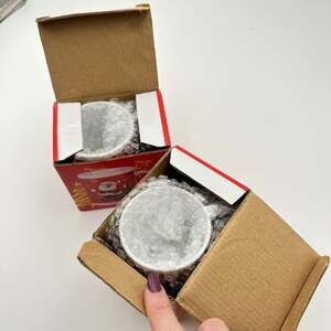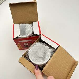 Set a two brand new never used or open 1990s Santa mug. Love their quirky gift boxes and fun design. No chips or cracks in new condition. Please see photos for item condition and details.