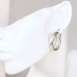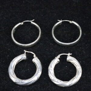 BRAND NEW 2 Pairs of large hoop pierced earrings. The smooth hoops are 1.5" diameter & 6mm wide. Stamped JCM 925 Thailand for Jacmel Mauritius. Textured hoop earrings are hallmarked 925 Thailand CI. They are 1" diameter and 6.2mm thick