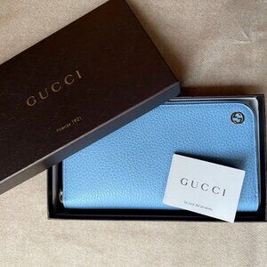 Brand NEW Authentic GUCCI Leather zipper wallet- light blue