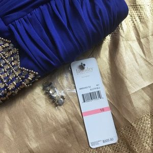 Laundry By Shelli Segal Electric Blue Dress with Gold/Silver Detail. Ruched bodice.