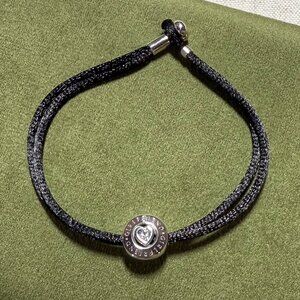 Brand NEW Limited-Edition Pandora Silk Cord Bracelet in black with sterling silver girlfriend-engraved heart CZ charm