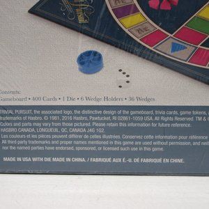 Includes gameboard, 400 cards, 1 die, 6 wedge holders, and 36 wedges
