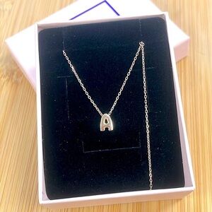 Brand New 14K Gold Plated Sterling Silver Bubble Letter Balloon “A” Necklace.  Initial monogram.  Stamped 925.  18” Length, adjustable extender.  Comes in box for easy gifting.  Pretty and on trend!