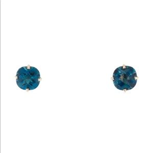 Brand new blue topaz stud earrings set in 14k yellow gold. Manufactured in the U.S.A.
