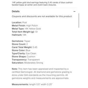 These were manufactured by my late father’s jewelry company. I am selling them because he passed away of a heart attack at 62 and we are liquidating the business. I am hoping to find these beautiful earrings a good home.