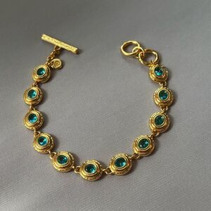 Each luxurious link of this adjustable-length tennis bracelet centers on an oval rose cut stone set within lightly hammered golden walls.