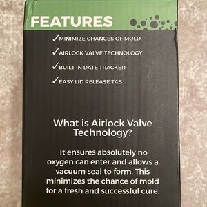✅ Airlock Valve Technology - Uses waterless airlock valve technology which functions as a sealing vapor lock for your container, allowing carbon dioxide to escape and lets you replenish fresh oxygen daily