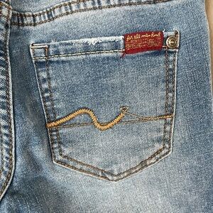 Brand New 7 For All Mankind Slimmy Comfort Ultra Flex Stretch Slim Straight Leg Distressed Blue Jeans. Adjustable waistband, snap button. Boys size 6.