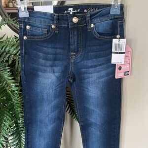 Brand New 7 For All Mankind The Skinny Dark Wash Super Stretch Ultra Flex Jeans. Girls size 7 & 8 available. Send your girl to school in style!