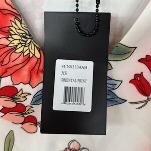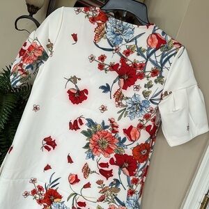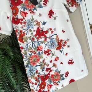 Brand New ABS Collection White Shift Dress Short Sleeved V-Neck Oriental Floral