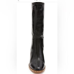 Shining nail-heads tracing the welt bring the label's signature utility vibe to a streamlined Italian-leather boot elevated by a stacked block heel.