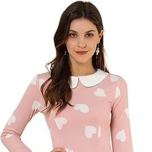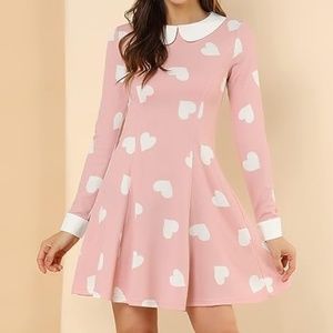 Brand New Allegra K Women's Collar Contrast Heart Print Dress