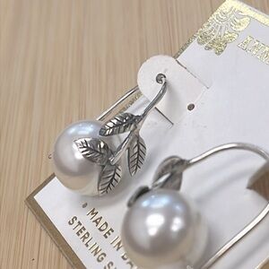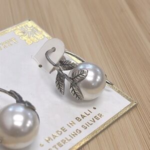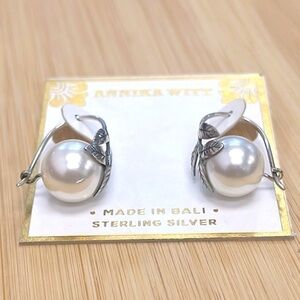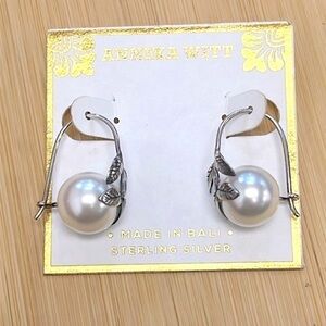 Brand New Annika Witt Sterling Silver Vine Leaf Faux Pearl Drop Earrings. Made in Bali. Pretty & unique!