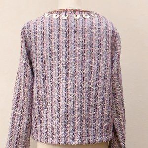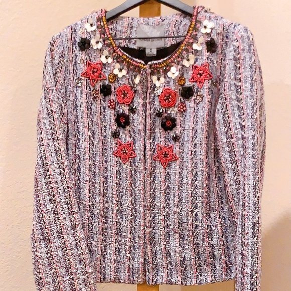 The jacket is a one of pieces with hand embroidery some lost of beats/yarn may occur pls.
