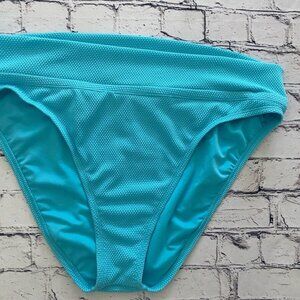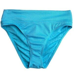 Brand New BCBG Turquoise Blue Textured Pique Bikini Bottoms XXL High Hip 34" NWT. Size: Women's XXL. Measurements, flat Waist 17 in. Condition: New with Tags!