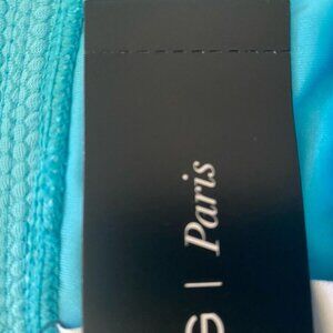 Brand New BCBG Turquoise Blue Textured Pique Bikini Bottoms XXL High Hip 34" NWT