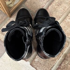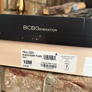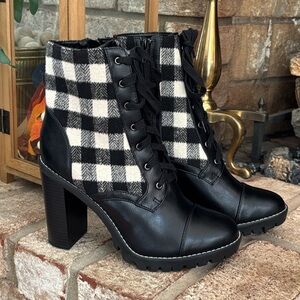 Brand New BCBGeneration Pilas Heeled Lace Up Bootie Black & Ivory Plaid Flannel