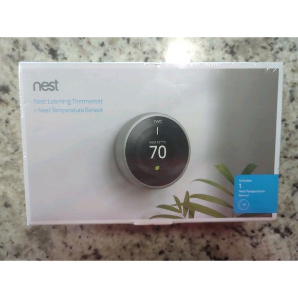 The Brand New Google Nest BH1253-US Thermostat Sensor in Silver is a sleek and modern device that is perfect for controlling the temperature in your home. It features a round shape, wall-mounted design, and comes with a trim plate, mounting hardware, and remote sensor. This thermostat is compatible with Amazon Alexa and Nest for seamless integration into your smart home system. With its programmable 7-day schedule, energy reporting features, and advanced sensor technology, this Nest thermostat offers both convenience and efficiency for all your heating and cooling needs.