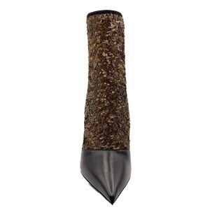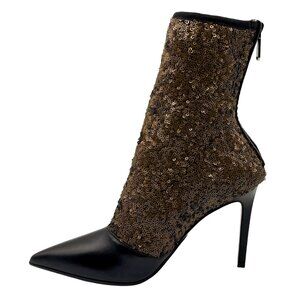 Brand new, 100% authentic Balmain Fay 95 Ankle Bootie in Black Leather and Bronze Sequin. EU size 37 (US equivalent size 7B). The photos included are actually taken from the article.