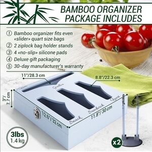 Brand New Bamboo Ziploc Bag Storage Organizer for Drawer or Wall Mount w/ Stands