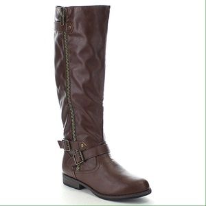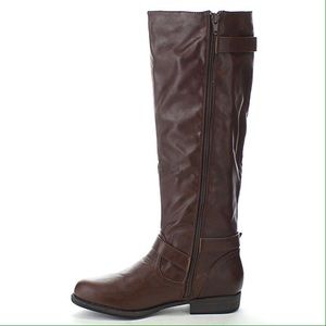 Brand New in the box. Bamboo knee high riding boots Brown size 8. The boots in the first photo are the exact boots other photo shows what the whole boot looks like.