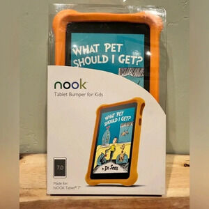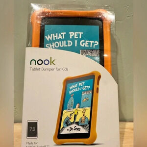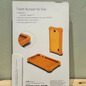 BRAND NEW IN BOX NOOK TABLET BUMPER FOR KIDS. DESIGNED BY BARNES & NOBLE. MADE FOR NOOK TABLET 7”. SAFE AND DURABLE PROTECTION FOR YOUR NOOK. FLEXIBLE, FOAM CONSTRUCTION. ABLE TO WITHSTAND WEAR AND TEAR TO KEEP YOUR CHILDS NOOK TABLET SAFE, SECURE AND WORKING FOR LONGER THAN 2 WEEKS!!. FUN AND PERFECT FOR KIDS. CITRUS COLOR. BRAND NEW! AVAILABLE IN MUTLIPLE COLORS.