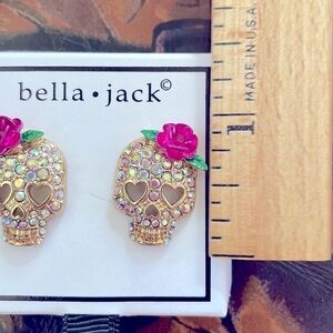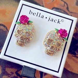 Brand New Bella Jack Halloween Skull w/ Rose Rhinestone Crystal Post Earrings. No box. Super pretty & eye-catching!